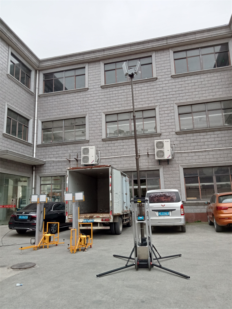 2. 采用4节气缸进行升降,可通过控制面板按键调节高度,升起高度可达4.8m、并可在范围内任意高度停止,适合在大面积照明场合。