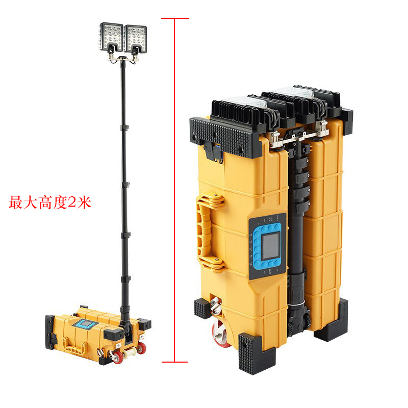 1、灯头功能:由4个100W LED光源组成,可根据现场需要将每个灯头单独做上下、左右大角度调节旋转实现360°全方位照明;整体照明远近兼顾,照明亮度高、范围大,灯泡寿命长。 2、照射范围:选用3节伸缩杆作为升降调节方式,最大升起高度为3.2米;上下转动灯头可调节光束照射角度,灯光覆盖半径达到35-55米。 3、照明时间:可直接使用发电机组供电,也可接通220V市电长时间照明。 4、适应场所:采用可调式三角支架,易固定、收放方便,适用于多种地形。具有重量轻、携带方便、适用范围广等特点。 5、为您定制:为满足用户个性化的需求,如本产品的标准配置不能满足用户的工作需要,我司可在灯盘的灯头数量、功率、泛光或聚光类型、伸缩气杆升起的高度按用户要求做出调整调整. |