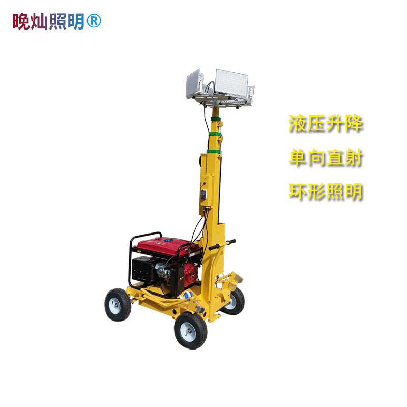 用于灾害事故现场照明,光源类型为 LED,具备液 压升降等功能。含单向直射、环形照明,可选配头灯、多功能手提探照灯、大功率广播等。功率≥2kW, 工作时间≥13h,输出 220V 和 380V 电压,抗风等级 ≥8 级, 防护等级≥IP65。