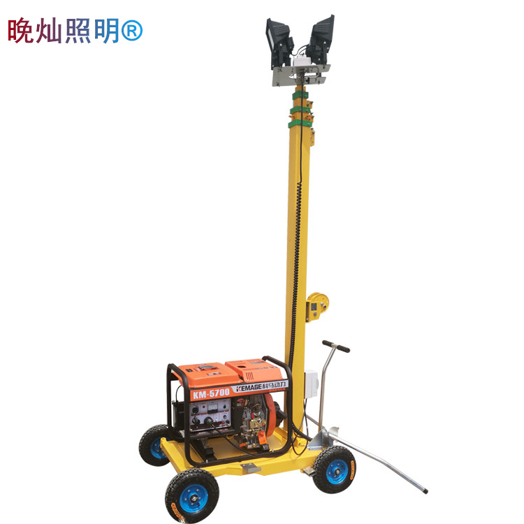 2、升降性能:采用四节伸缩手摇杆作为升降调节方式,升起高度为4.5米;上下转动灯头可调节光束照射角度,灯光覆盖半径达到200米。。