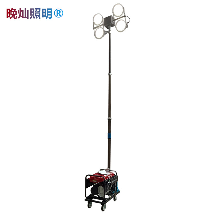 3、工作时间:使用发电机组供电时,一次注满燃油可连续工作13小时以上,使用220V市电可长时间照明。
